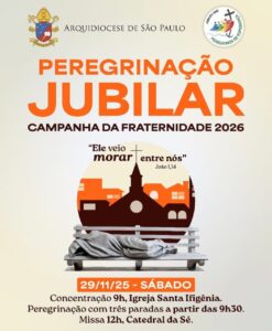Na manhã de sábado dia 29 de novembro, o CCJ participou da Peregrinação em Busca da “Moradia Digna”, uma caminhada com os Movimentos Sociais, com saída da Igreja de Santa Ifigênia terminando com a missa na Catedral da Sé, em São Paulo celebrando nossa largada para a campanha da Fraternidade 2026.